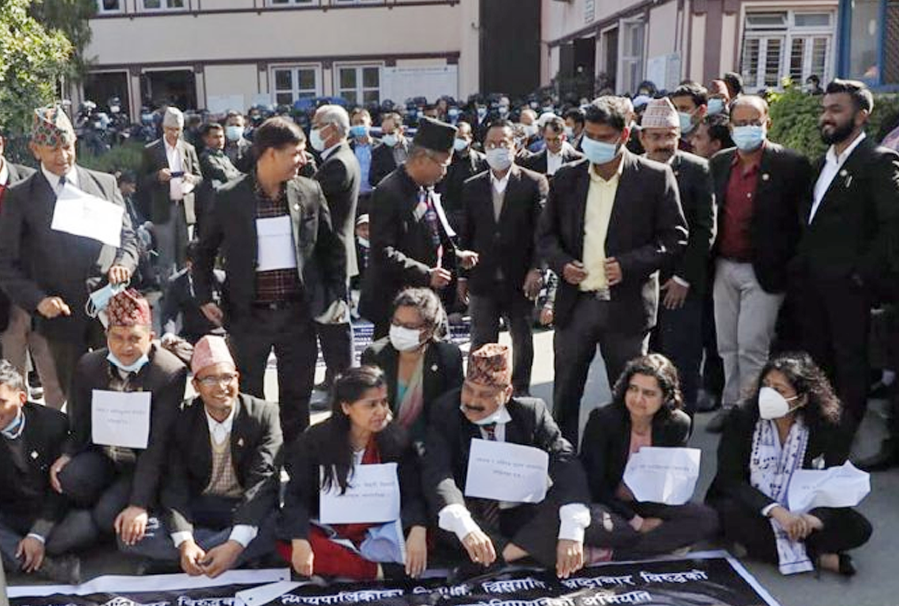 काठमाडौँ, ६ पौष । कानून व्यवसायीले आज पनि सर्वोच्च अदालत परिसरमा नाराबाजी गरेका छन् ।