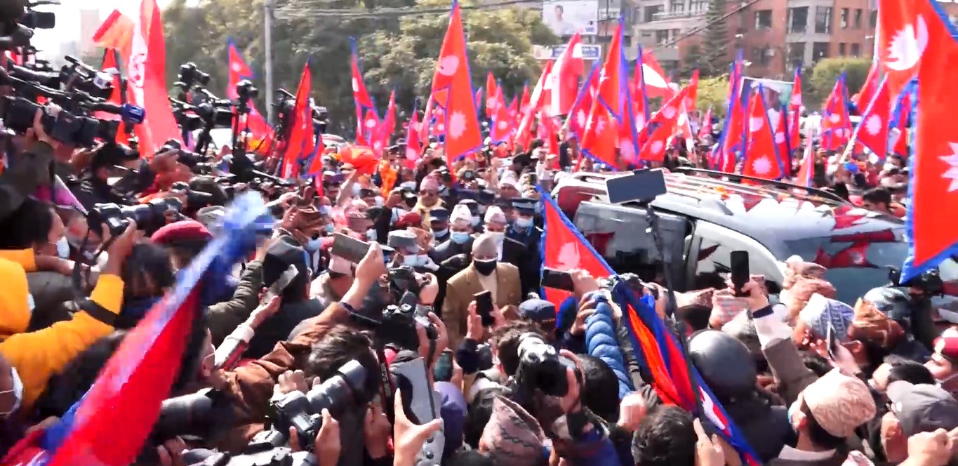 काठमाडौँ, २८ पौष । कारोनाको तेस्रो लहरलाबाट जोगिन सरकारले सोमबारबाट २५ जनाभन्दा धेरै भेला हुन रोक लगाएको छ । तर, २४ घन्टा नबित्दै देशका उच्चपदस्थ व्यक्तिबाटै सिंहदरबार गेटमै सरकारी निर्णयको अवज्ञा भएको छ ।