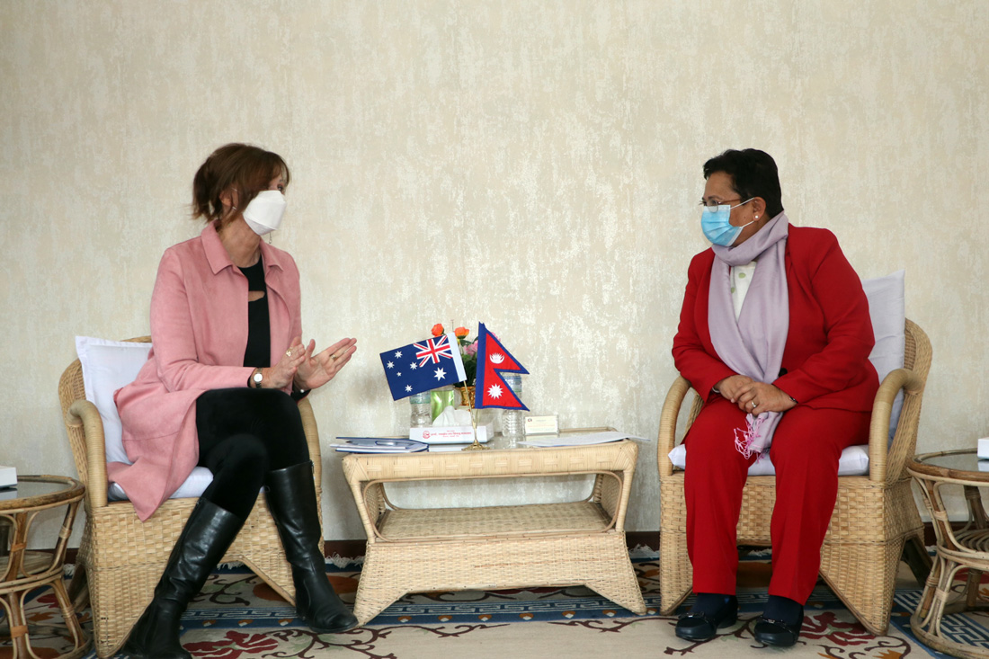 काठमाडौँ, १७ माघ । ऊर्जा, जलस्रोत तथा सिँचाइमन्त्री पम्फा भुसालसँग नेपालका लागि अष्ट्रेलियाली राजदूत फेलिसिटी जान भोल्कले शिष्टाचार भेट गरेकी छन् । मन्त्रालयमा आज उनीहरूबीच भएको भेटमा द्विपक्षीय हित र चासोका विविध विषयमा छलफल भएको थियो ।
