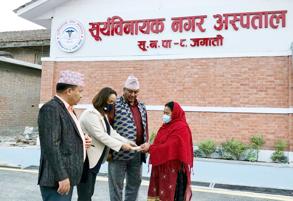 नेता बस्नेत मार्फत नागरिक हेल्थ ट्रष्ट फण्डका अध्यक्ष गोपीकृष्ण न्यौपाने, उपाध्यक्ष बचन देउजा र कोषाध्यक्ष डा. मोनिषा कार्कीको पहलमा नागरिक हेल्थ ट्रष्ट फण्डले रु ५० हजार सहयोग गरेको छ । सहयोग रकम सूर्यविनायक नगर अस्पताल जगातीबाट डा. कार्कीले हस्तान्तरण गर्नुभयो ।