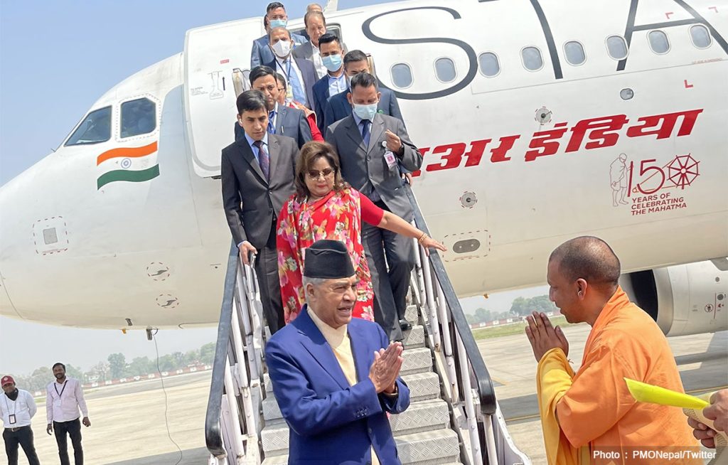 एयर इण्डियाको जहाजमार्फत् बनारस पुगेका प्रधानमन्त्री देउवालाई उत्तर प्रदेशका मुख्यमन्त्री योगी आदित्यनाथले स्वागत गरे ।
