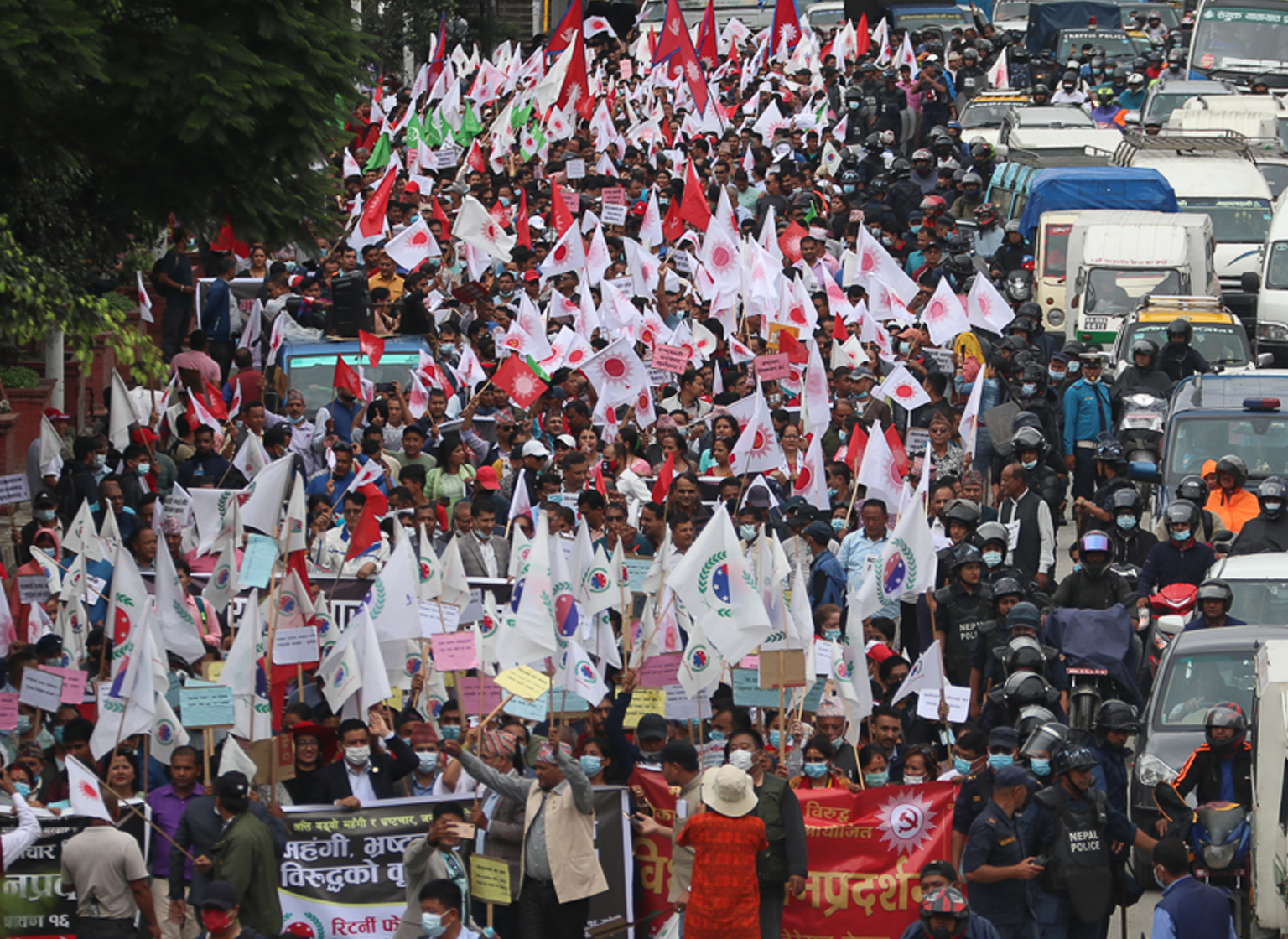 काठमाडौँ, १६ साउन । नेपाल एमालेले काठमाडौँको वसन्तपुरमा महंगी र भ्रष्टाचारविरुद्ध प्रदर्शन गरेको छ ।