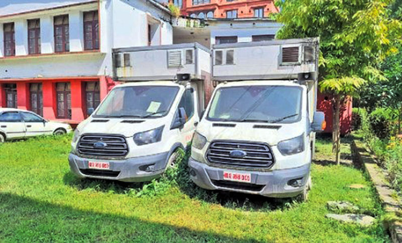 काठमाडौँ, ९ असोज । गाडीको रङ फुग उडेको छ। टायरमा झार उम्रिएको छ । ब्याट्री बिग्रिएका छन्। कसैबाट संरक्षण रहेरचाह पनि भइरहेको छैन । चार वर्षअघि नयाँ किनेर ल्याएपछि ती गाडी जहाँ राखिएका थिए, अहिलेसम्म त्यहीं छन्। ती चारवटा गाडी (भ्यान) घामपानी, हिउँदवर्षा जतिबेला पनि खुला आकाशमुनि छन् ।