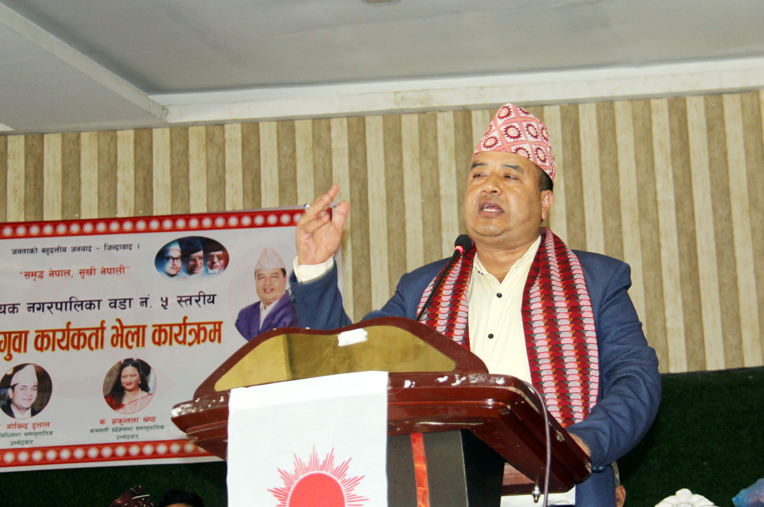 निर्वाचनमा एमालेको प्रतिष्पर्धि कुनै पनि पार्टी नभएको उल्लेख गर्दै उहाँले एमालेले चुनाव लड्नको लागि नभई जीतको औपचारिक घोषणाको लागि मात्र मंसिर ४ गते पर्खिएको उल्लेख गर्नुभयो । एमाले नेतृत्वको सरकारको पालामा राष्ट्रियताको सवालमा विश्वलाई नेपालको शिर उचो बनाएको स्मरण गराउँदै उहाँले ओली नेतृत्वको सरकारले लिपुलेक, लिपिम्याधुरा र कालापानीसहितको चुच्चे नक्सालाई अहिलेको सरकारले बुच्चे बनाएको आरोप लगाउनुभयो । वर्तमान सरकारले एमसीसी, एसपीपी, राष्ट्रघाती नागरिकता विधियक ल्याई मुलुकलाई सयौं वर्ष पछि धकेल्ने मात्र नभई शक्ति राष्ट्रहरुको खेलमैदानको रुपमा लैजान खोजेको उल्लेख गर्दै उहाँले आगामी निर्वाचनमा राष्ट्रघातीलाई चोट तथा राष्ट्रवादी एमालेलाई जनताले भोट दिनुपर्नेमा जोड दिनुभयो ।