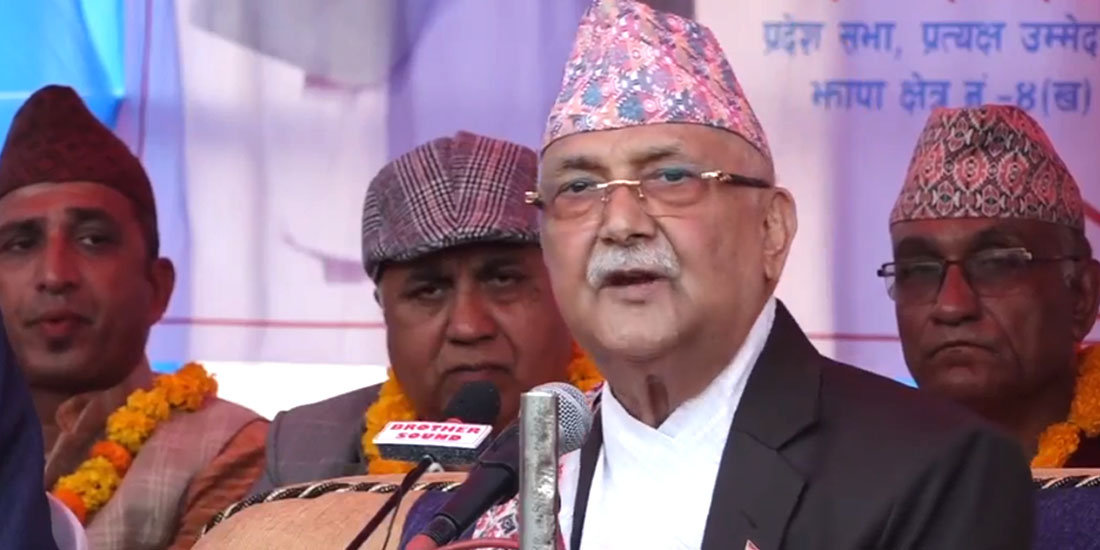 उनले शेरबहादुर देउवा र प्रचण्डले नक्कली मीत लगाएको समेत बताए । चुनावपछि सत्ताको लागि देउवा र प्रचण्डको वारपार ओलीको जिकिर गरे ।