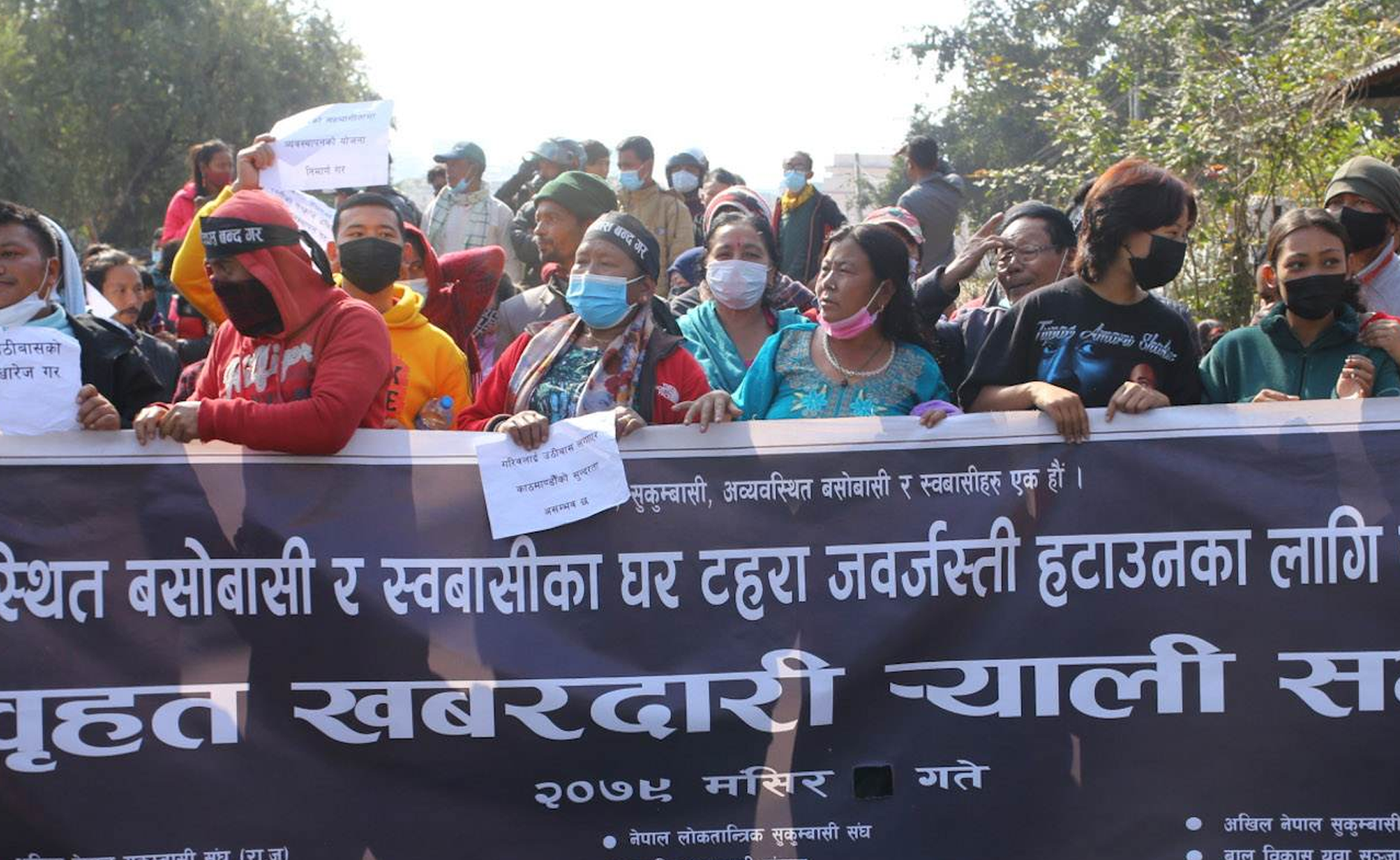 सुकुमबासीहरूले आफूहरुलाई सुकुमबासी बस्तीबाट महानगरपालिकाले बलपूर्वक हटाउन लागेकोमा विरोध प्रदर्शन गरेका हुन् । महानगरपालिकाले सोमवार सुकुमबासी वस्ती हटाउनका लागि डोजर लिएर गएपछि सो क्षेत्र तनावग्रस्त बनेको थियो ।