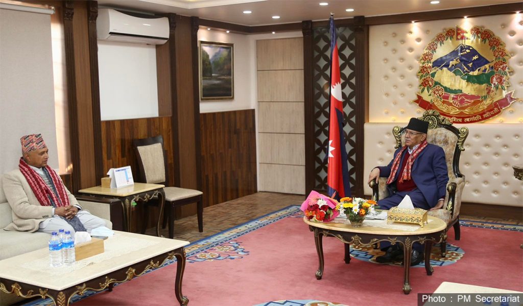 प्रधानमन्त्री निवास बालुवाटारमा आज बिहान भएको भेटमा संघीयतालाई बलियो बनाउनेबारे कुराकानी भएको बताइएको छ ।