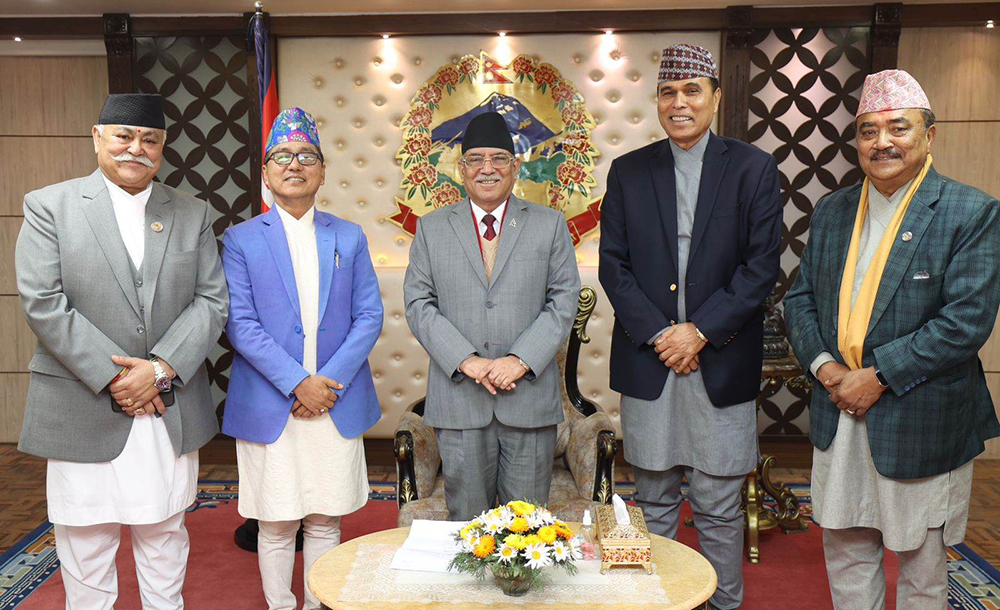 काठमाडौँ, १३ फागुन । राष्ट्रिय प्रजातन्त्र पार्टी (राप्रपा)का मन्त्रीहरुले प्रधानमन्त्री पुष्पकमल दाहाल प्रचण्डलाई राजीनामा बुझाएका छन् ।