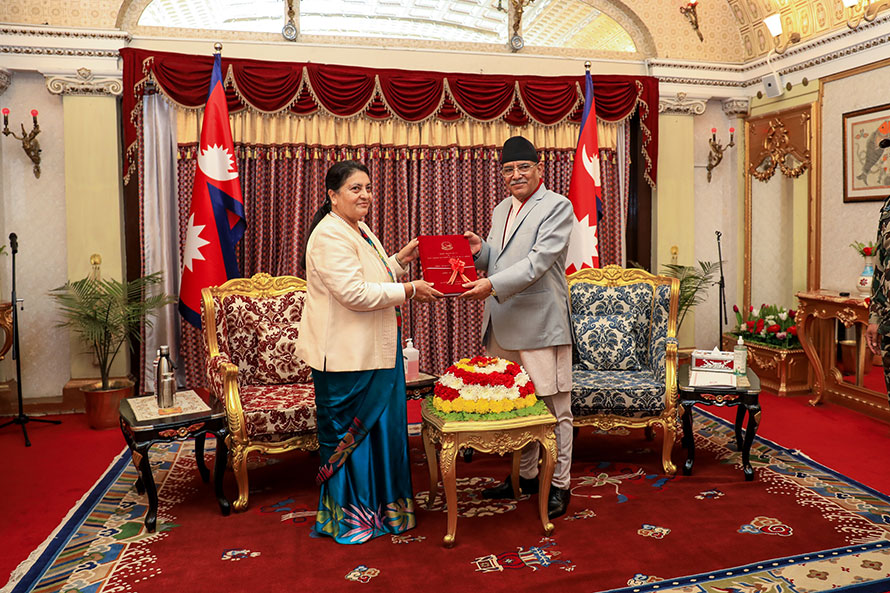 प्रधानमन्त्री पुष्पकमल दाहाल प्रचण्डले आइतबार राष्ट्रपति भवन शीतलन निवासमा विद्यादेवी भण्डारी समक्ष सरकारको उपलब्धीसहितको वार्षिक प्रतिवेदन बुझाएका हुन् ।