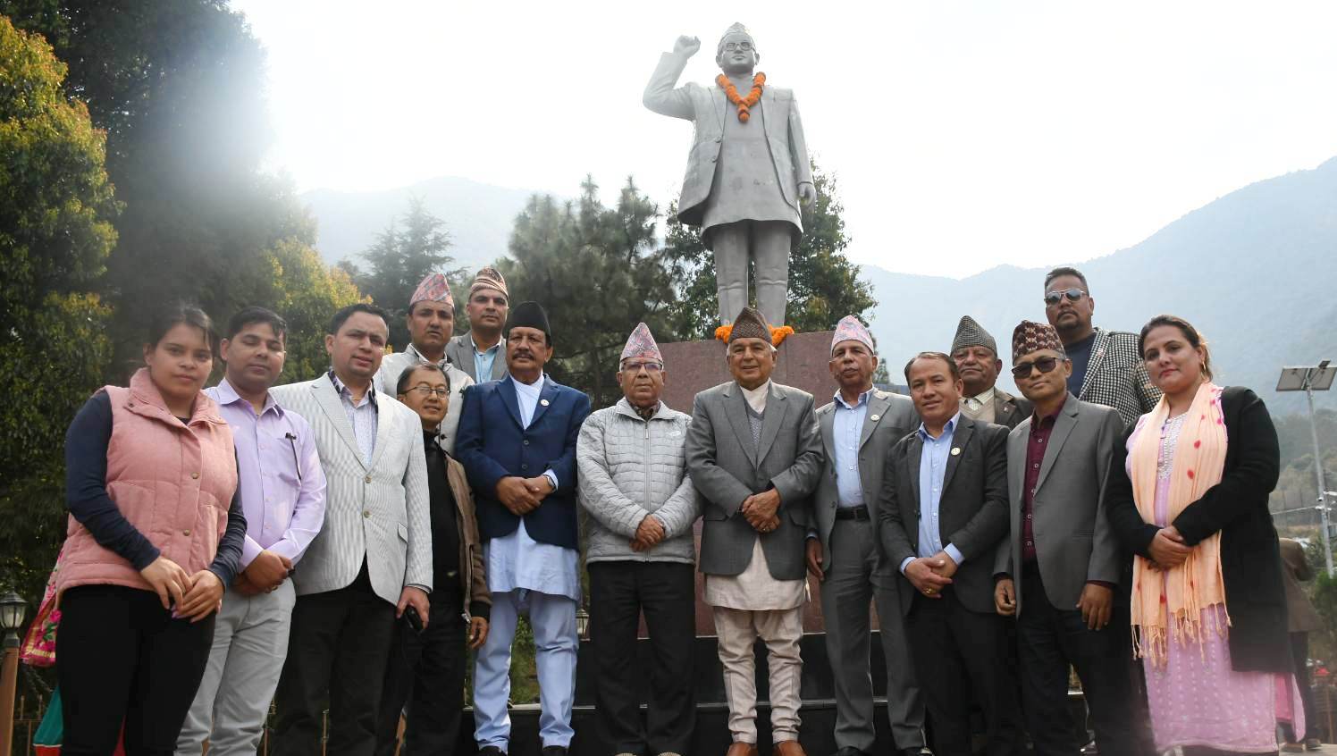 नवनिर्वाचित राष्ट्रपति पौडेलद्वारा पुष्पलालको शालिकमा माल्यार्पण