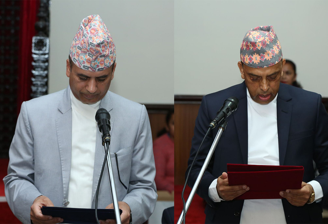 काठमाडौँ, २४ बैशाख । संघीय संसद्अन्तर्गत प्रतिनिधिसभा र राष्ट्रियसभाका नवनियुक्त दुई सचिवले आज पद तथा गोपनीयताको शपथ लिएका छन् ।