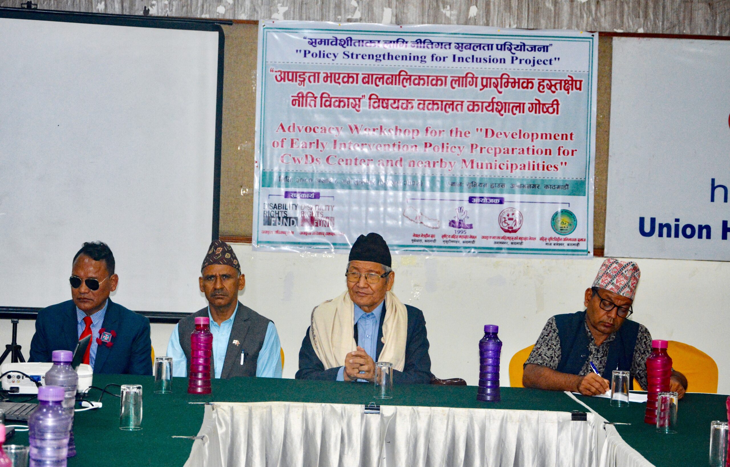 उहाँले नेपाल नेत्रहिन सङ्घद्वारा शुक्रवार राजधानीमा आयोजित “अपाङ्गता भएका बालबालिकाका लागि प्रारम्भिक हस्तक्षेप नीति विकास विषयक वकालत कार्यशाला कार्यक्रममा नेपालमा अपाङ्गता अवस्थाको पहिचानबारे जानकारी नै नहुँदा त्यसबाट बालबालिकाले निक्कै सास्ती पाउने र पछि थाह पाइहालेमा पनि शिक्षा स्वास्थ्यको पहुँचबाहिर राखेर केही गर्न नसक्ने अवस्थामा राख्ने प्रवृत्तिको अन्त्य गर्दै अपाङ्गता भएका बालबालिकाका लागि शिक्षा र उचित तालिम दिएर राष्ट्रका लागि नै योगदान दिने नागरिक बनाउनुपर्ने बताउनुभएको हो ।