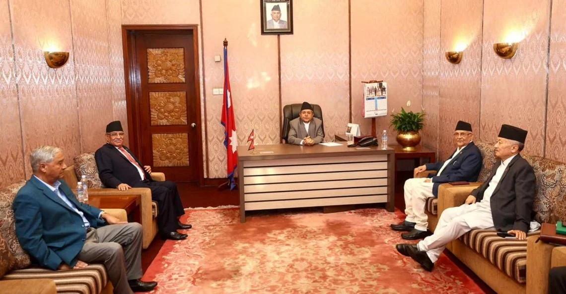 प्रधानमन्त्रीको सरकारी निवास बालुवाटारमा बिहान साढे १० बजे सभामुख देवराज घिमिरेसहित प्रधानमन्त्री पुष्पकमल दाहाल प्रचण्ड, कांग्रेस सभापति शेरबहादुर देउवा, प्रमुख प्रतिपक्षी दलका नेता केपी ओलीबीच छलफल हुने भएको हो ।