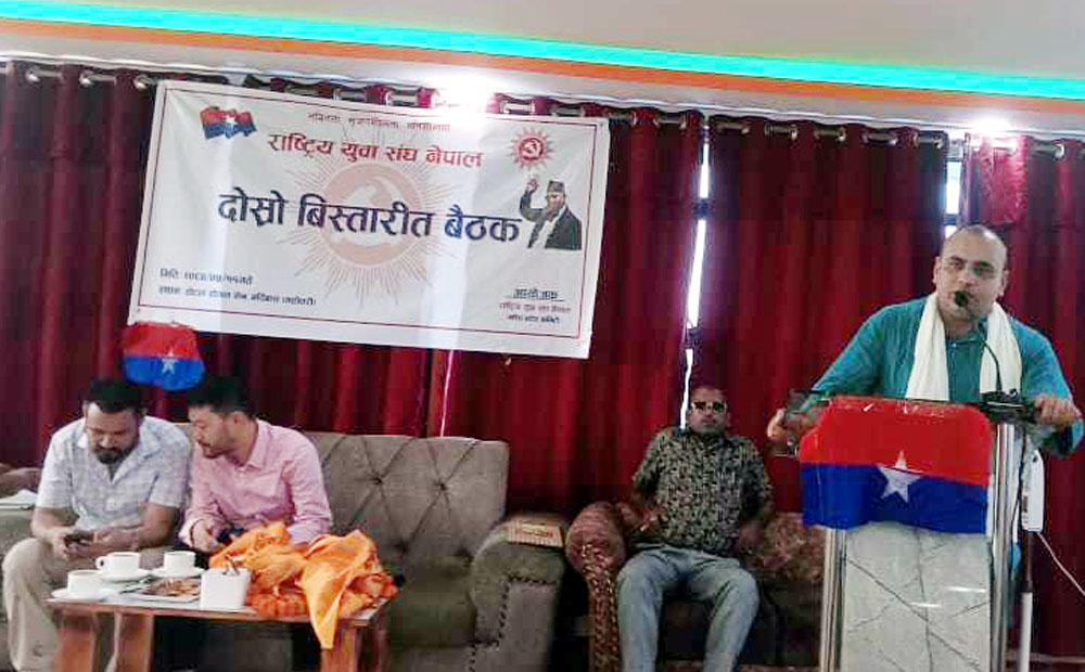 नेकपा एमाले र नेकपा एमालेको नेतृत्व आज देश र जनताको हितमा सतिसाल भएर उभिदा पार्टी र नेतृत्व माथी षड्यन्त्र गरिएको उल्लेख गर्दै उहाँले युवा संघ नेपाल पुनः सचेत भएर पार्टीको पक्षमा सिपाही भएर फेरि आक्रमक हुने बेला आएको धारणा राख्नुभयो । पार्टीले सबै कमिटीमा युवाको लागि आरक्षण दिएर युवाहरुलाई नेतृत्वमा ल्याउन गरेको पहल अति नै राम्रो निर्णय भएकोले पार्टीलाई धन्यवाद दिदै उहाँले लक्षित युवा बर्गमा गएर देश भरिका प्रगतिशिल युवाहरुलाई राष्ट्रिय युवा संघ नेपालको व्यानरभित्र समेट्न युवाहरुलाई समेट्नुपर्नेमा जोड दिनुभयो ।