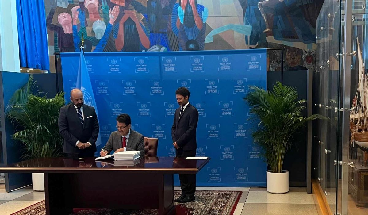 संयुक्त राष्ट्रसंघको ७८औँ महासभामा भाग लिन आएका परराष्ट्रमन्त्री एनपी साउदले राष्ट्रसंघले प्रस्ताव गरेको उक्त सम्झौतामा हस्ताक्षर गरेका हुन्।