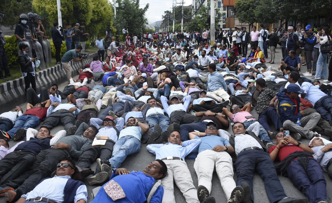 शिक्षकहरुद्वारा सडकमै सुतेर विरोध प्रदर्शन