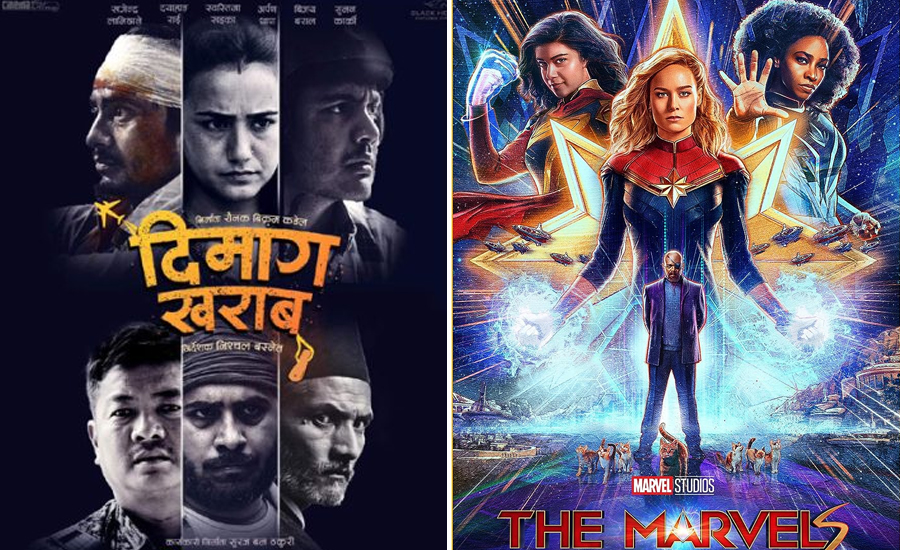 काठमाडौँ, २४ कार्तिक । आजदेखी देशभरका हलमा निश्चल बस्नेत निर्देशित नेपाली फिल्म ‘दिमाग खराब’ र हलिउडको प्रतीक्षित सुपरहिरोइन फिल्म ‘द मार्वल्स’ प्रदर्शनमा आएका छन् ।