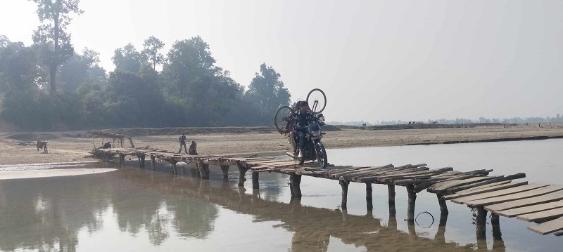 स्थानीयले काठे पुल प्रयोग गरेबापत साइकलको १० र मोटरसाइकलको २० रुपैयाँ शुल्क तिर्ने गरेका छन् ।  नदीमा व्यक्तिगत लगानीमा स्थानीय मङ्गलबहादुर चौधरीले काठको फड्के निर्माण गर्नुभएको छ । सालको काठबाट फलेक जोडेर बनाइएको अस्थायी पुल जीर्ण बन्दै गएको स्थानीय कृष्ण रानाले बताउनुभयो । ‘पुलका टेको मक्किएका छन् । दुर्घटनाको खतरा छ । हामीले कहिलेसम्म काठे पुल प्रयोग गर्ने ?’, उहाँले भन्नुभयो ।