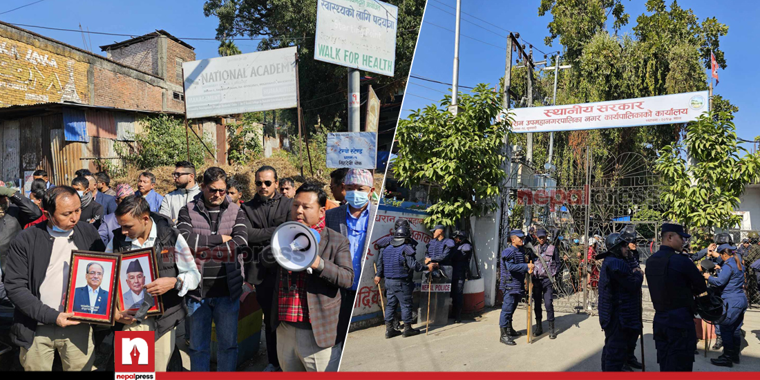 कांग्रेस, एमाले, माओवादीलगायत दलका युवा तथा विद्यार्थी संगठनका कार्यकर्ता राष्ट्रपति रामचन्द्र पौडेल र प्रधानमन्त्री पुष्पकमल दाहाल ‘प्रचण्ड’ को फोटो लिएर उपमहानगरपालिका पुगेका थिए । परिस्थिति असहज हुनसक्ने भन्दै प्रहरीले आफूहरूलाई रोकेको राष्ट्रिय युवा संघका एक नेताले वताए ।