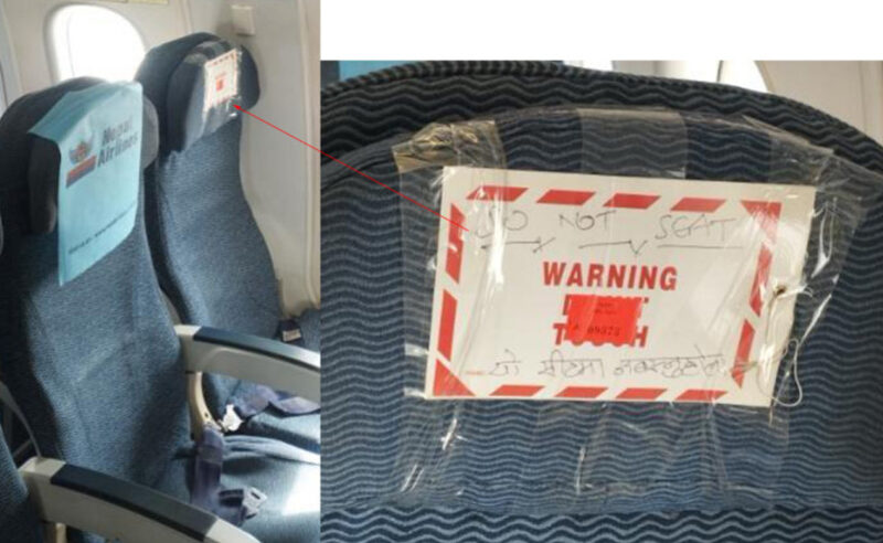 भाँचिएको सिटमा यात्रु नबसुन् भनेर रातो रंगको स्टिकर टाँसिएको छ । यात्रुहरूले भाँचिएको सिटका बारेमा जिज्ञासा राख्दा ‘चाँडै बन्छ’ भन्ने जवाफ दिने गरेको तर कतिपय यात्रुले उक्त सिटका बारेमा व्यंग्य गर्ने गरेको निगमकी एक परिचारिकाले बताइन् । ‘भाँचिएको सिट छेउमै त्यो पनि रातो रंगको देखिएपछि कतिपय यात्रु डराउँदा रहेछन्,’ उक्त विमानमा उडेकी एक परिचारिकाले भनिन्, ‘कतिपय यात्रुले बुझ्दैनन् । हाम्रा एयरहोस्टेस बैनीलाई एउटा सिट पनि बनाउन नसक्ने ? कस्तो निगम ? भन्छन् ।’