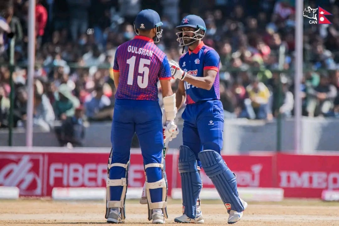 कीर्तिपुरस्थित अन्तर्राष्ट्रिय क्रिकेट मैदानमा टस जिती पहिले ब्याटिङको निर्णय लिएको नेपालले निर्धारित २० ओभरमा आठ विकेट गुमाएर एक सय ८४ रन बनाएको हो ।