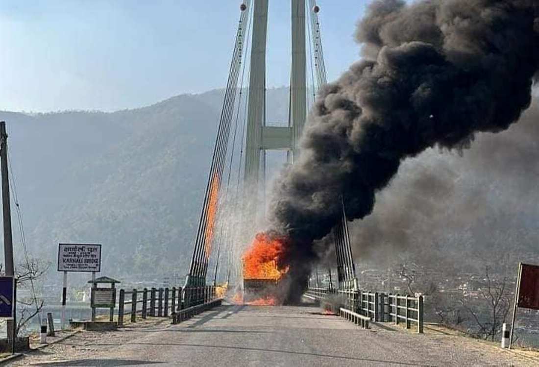 काठमाडौँ, २९ फागुन । सोमबार भएको आगलागीबाट आंशिकरूपमा क्षति भएपछि कर्णाली पुलमा सवारीसाधन आवागमन बन्द गरिएको छ ।