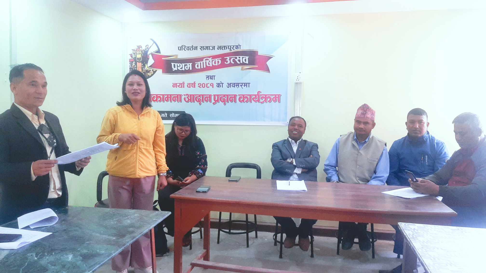 परिवर्तन समाजले बर्षभरीमा तालिम, बैठक, प्रवचन, जनचेतना मुलक भ्रमण, सांस्कृतिक पर्वलगाएत दर्जनौ कार्यक्रम सम्पन भएको बार्षिक उत्सवमा बताउनु भयो । राज्यले गर्नुपर्ने कामहरुमा परिवर्तन समाजले केही हदसम्म घच्चघचाएको जसले गर्दा समाज परिवर्तनमा टेवा पुगेकोछ। परिवर्तनशील आवाज साप्ताहिक पत्रिकाका सम्पादक कृष्ण प्रजापतिले सांस्कृतिक पक्षमा ध्यान दिए राष्ट्रिय एकताको लागि टेवा पुग्ने भनी शुभकामना व्यक्त गर्नु भयो।,राजनितीकर्मी राम गोपाल चगुठीले नेपाल सरकार बागमती प्रदेशमा नेपाभाषा र तामाङ भाषालाइ सरकारी काम काजमा बैशाख २२ गतेदेखि व्यवहारिक रुपमा लागू गरिने जानकारी दिनु भयो। अनलाइन खबर डटका सम्वाददाता रेणु त्वानावासु, भुगोल सचिव राधिका लवजु,विन्दु शिल्पकार अन्जना सिजख्व ,अन्जना कुम्पाख लगायतले परिवर्तन समाजलाई शुभकामना दिनु भएको छ । परिवर्तन समाज भक्तपुरका कोषाध्यक्ष पुन्यराम सुवाल सचिव अक्षय सुन्दर प्रजापतिले बार्षिक उत्सवमा आर्थिक तथा प्रगति प्रतिवेदन र आगामी कार्यक्रमको प्रतिवेदन प्रस्तुत गर्नु भएको थियो।