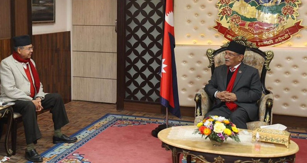 काठमाडौँ, ११ वैशाख । पूर्वप्रधानमन्त्री झलनाथ खनाल र प्रधानमन्त्री पुष्पकमल दाहाल ‘प्रचण्ड’बीच आज बालुवाटारमा भेटघाट भएको छ ।