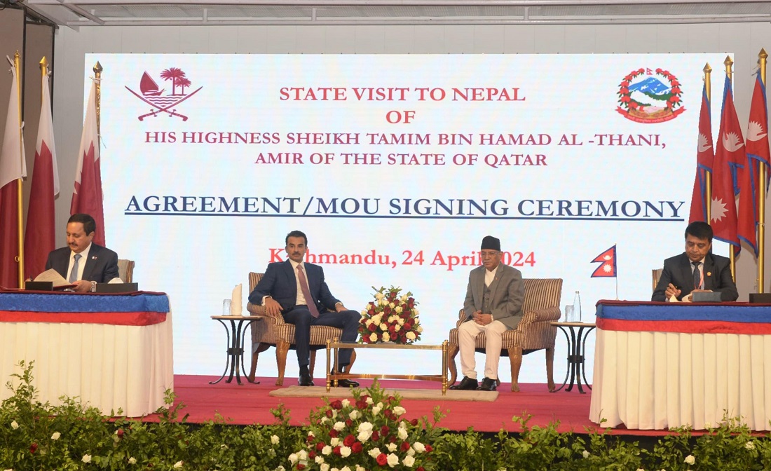 कतारी राजाको दुई दिने नेपाल भ्रमणका क्रममा बुधबार नेपाल उद्योग वाणिज्य महासंघका अध्यक्ष चन्द्र प्रसाद ढकाल र कतार चेम्बरका अध्यक्ष शेख खलिफा बिन जसिम अल थानीबिच नेपाल–कतार संयुक्त वाणिज्य परिषद् स्थापना गर्ने सम्झौता भएको हो ।