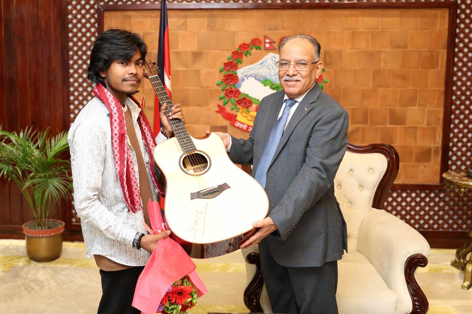 नेपाल आइडल विजेता करण परियारले भेटे प्रधानमन्त्री