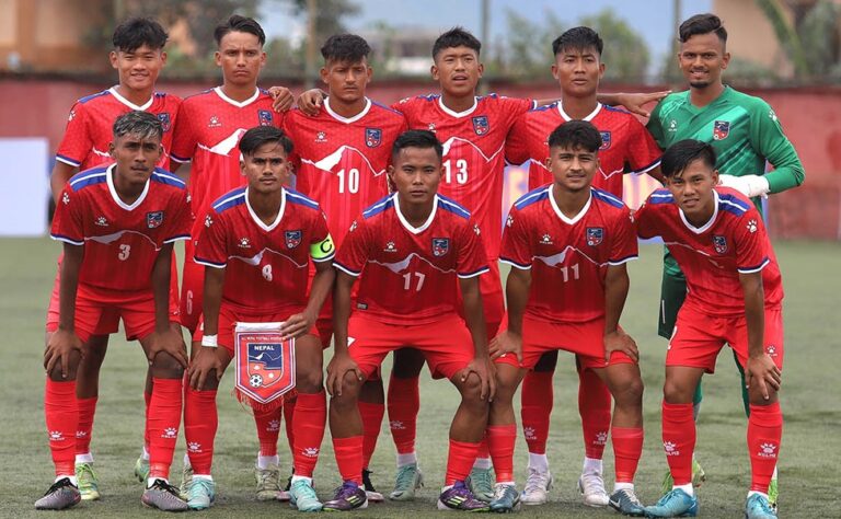 काठमाडौँ, ९ भदौ । गोलकिपर जियारथ शेख नायक बनेपछि नेपालले भुटानविरुद्ध ‘पेनाल्टी सुटआउट’मा ४–१ को जित निकाल्दै साफ यू–२० च्याम्पियनसिपको फाइनलमा स्थान बनाएको छ ।