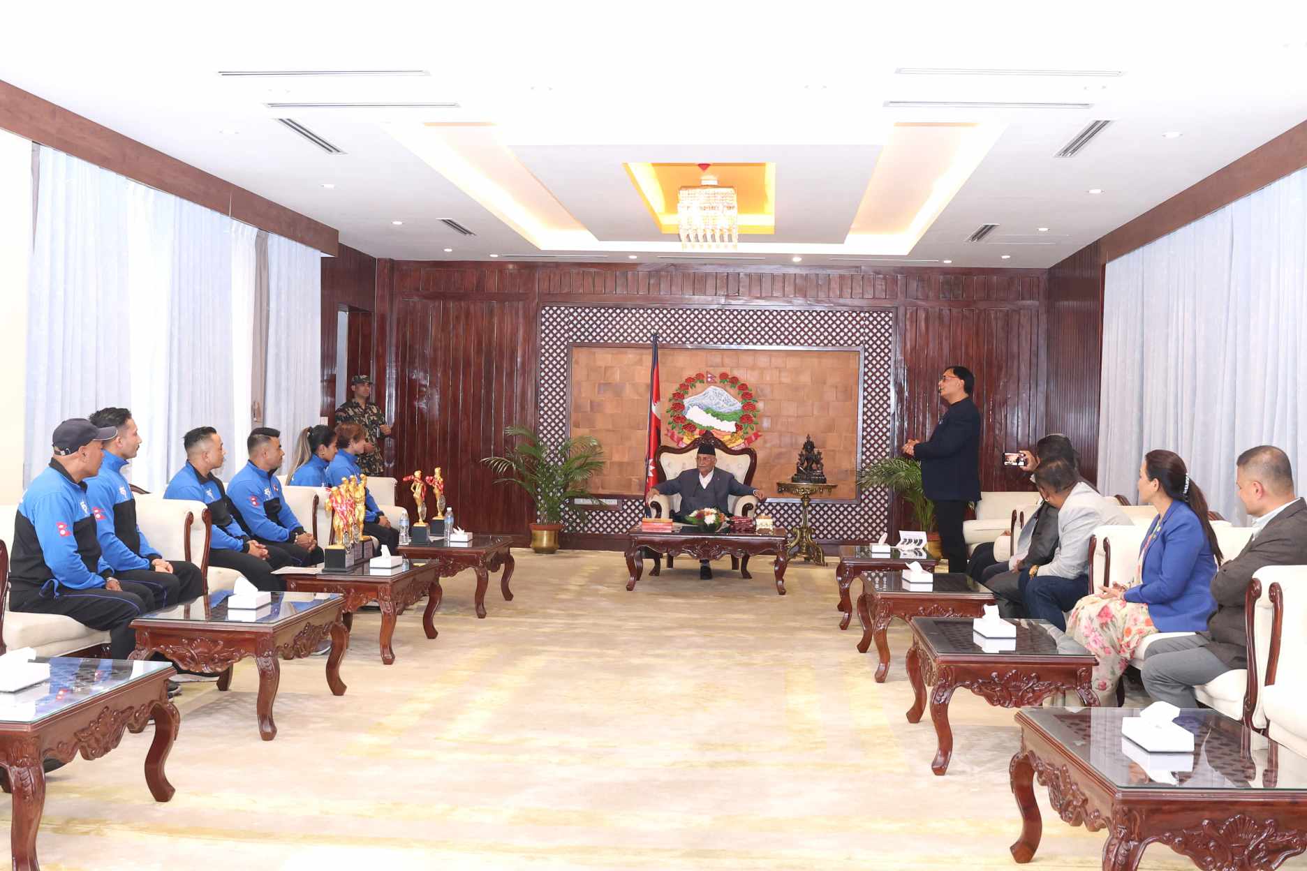 प्रधानमन्त्री निवास, बालुवाटारमा आज प्रधानमन्त्री ओलीले ती खेलाडीलाई बधाई दिँदै सम्मान गर्नुभएको हो ।