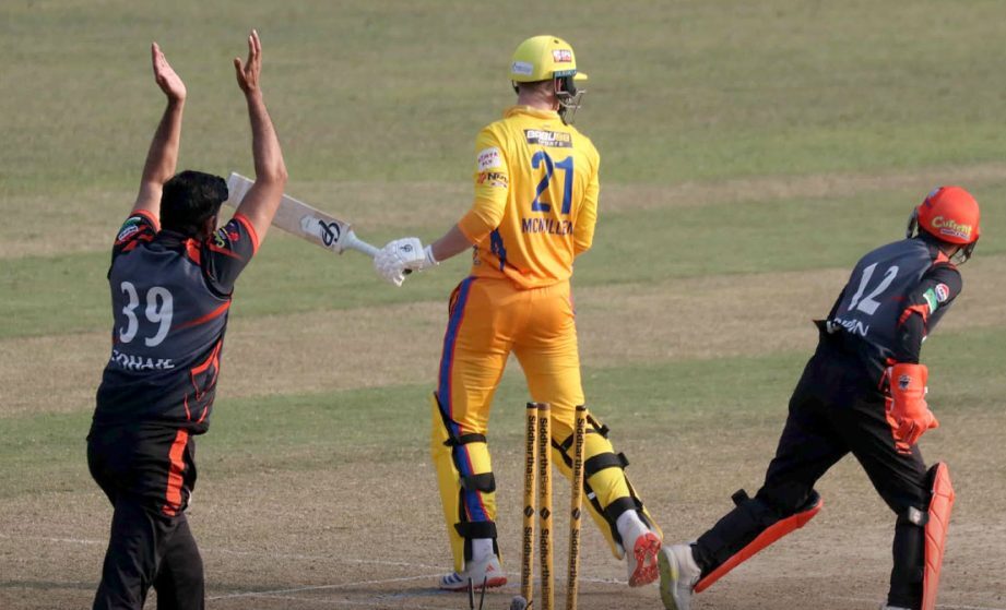 यसबाहेक, रञ्जित कुमार र सोहेल तान्विरको नाममा एक विकेट रह्यो । रञ्जितले आरिफ सेखको विकेट लिँदा तान्विरले कुग्गेलेनलाई पभेलियन फर्काए ।