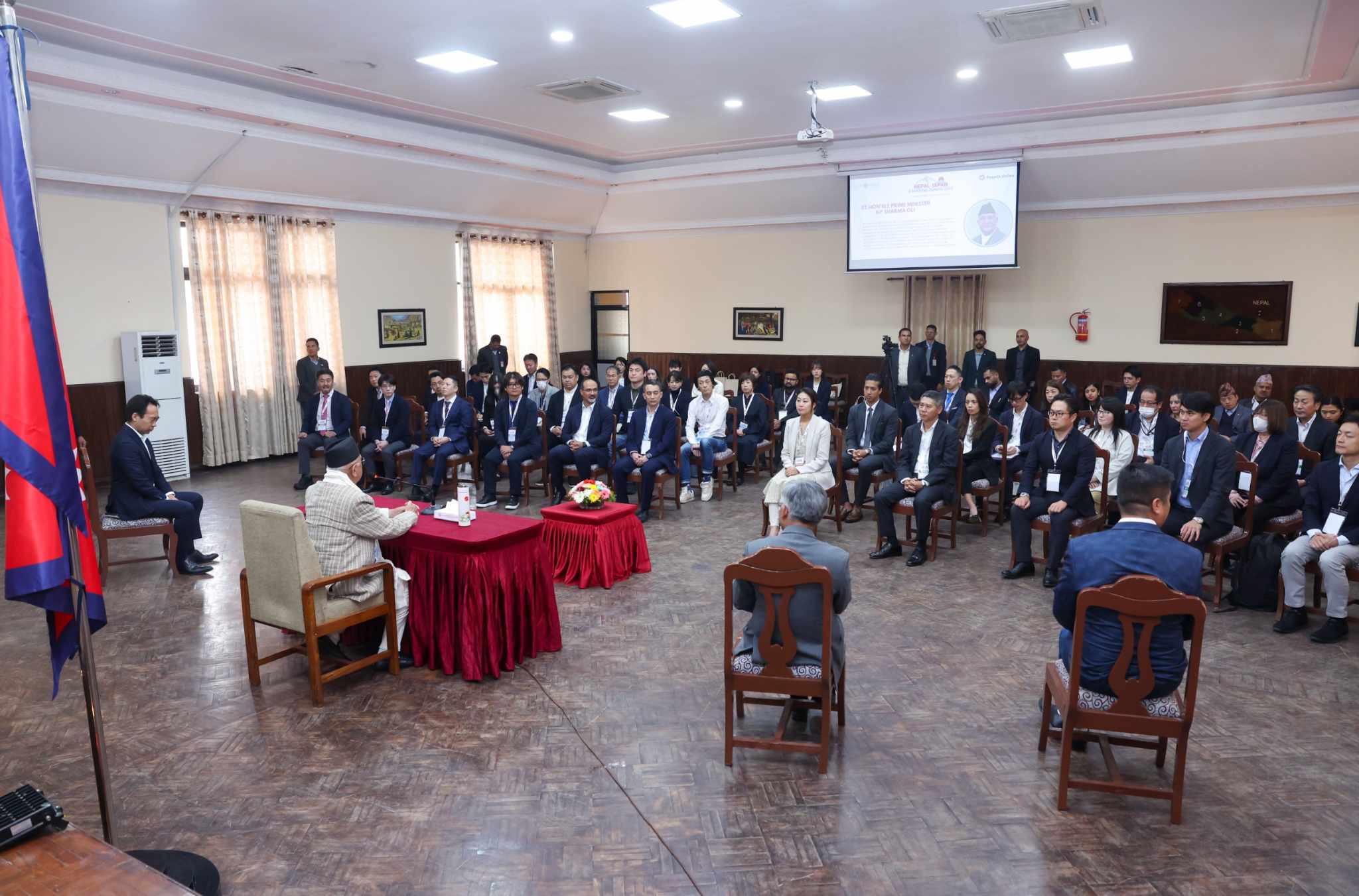 सो समिटमा सहभागी हुन नेपाल आएका जापानी टोली र नेपाली समन्वयकर्ताहरुसँग आज प्रधानमन्त्री निवास, बालुवाटारमा भएको भेटमा प्रधानमन्त्री ओलीले नेपाल र जापानबीच सरकार–सरकार र जनता–जनताबीचको लामो सम्बन्ध अब आयात–निर्यातमा पनि विकसित हुन थालेको बताउनुुभएको हो ।