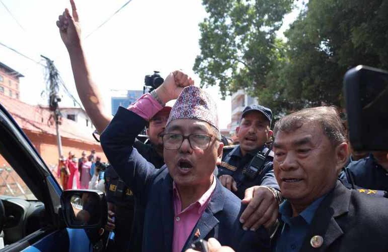 सिंहदरबारभित्रै प्रदर्शनमा उत्रिएपछि प्रहरीले आइतबार दिउँसो नेताहरूलाई पक्राउ गरेको हो । पक्राउ पर्नेमा नेताहरू ज्ञानेन्द्र शाहीसमेत छन् । उनीहरूलाई भ्यानमा हालेर प्रहरीले सिंहदरबारमै राखेको छ।