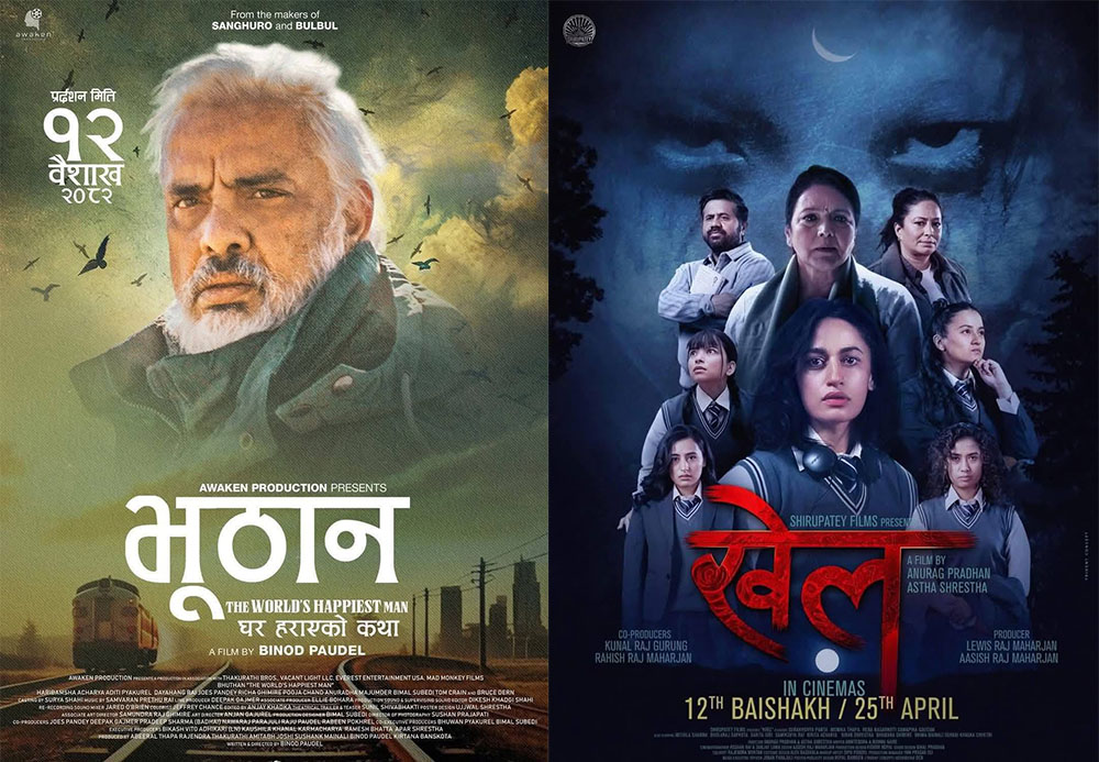 काठमाडौँ, १२ बैशाख । आज दुईवटा नेपाली चलचित्र रिलिज भएका छन् । चलचित्र ‘भूठान’ र ‘खेल’ एकै दिन प्रदर्शनमा आएका हुन् ।