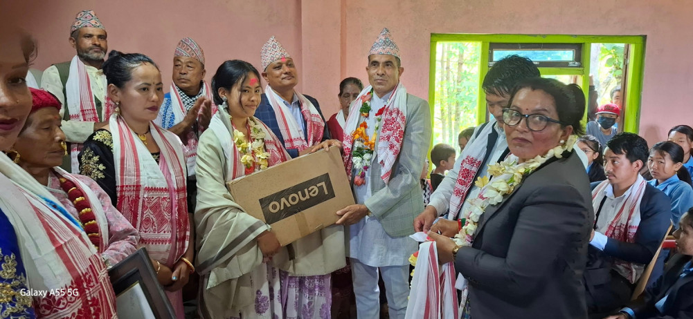 पाँचथर, १७ जेठ । पाँचथरको हिलिहाङ गाउँपालिका-५ वडा कार्यालयले २०८१ सालको एसइई परीक्षामा वडा भित्रका विद्यालयबाट सर्वोत्कृष्ट अङ्क ल्याएकी छात्रालाई पुरस्कार स्वरूप ल्यापटप वितरण गरेको छ ।