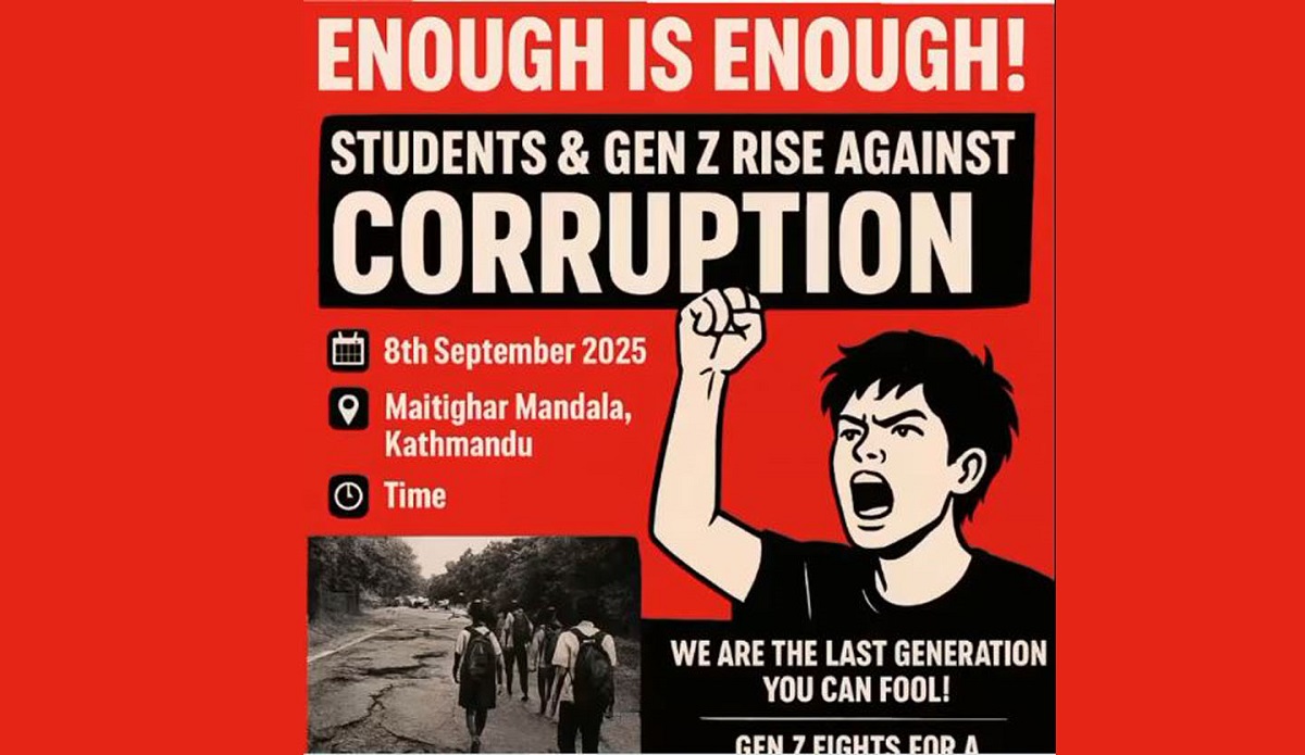 जेनजीले काठमाडौंको माइतीघरमा बिहान ९ बजेदेखि प्रदर्शन लागेका हुन् । जेनजी पुस्ताले आन्दोलन गर्ने भनेर केही दिनदेखि सामाजिक सञ्जालमार्फत आह्वान गर्दै आएका छन् । उनीहरूले सरकारले सामाजिक सञ्जाल बन्द गरेको र भ्रष्टाचरविरूद्ध प्रदर्शन गर्न लागेका हुन् ।
