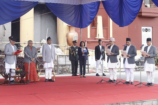 सरकारी निकाय र कूटनीतिक नियोगका प्रमुखहरु पनि शपथमा उपस्थित छन् । आज तीन मन्त्रीहरु अर्थमन्त्री रामेश्वर खनाल, उर्जा, भौतिक योजान र सहरी विकासमन्त्री कुलमान घिसिङ र गृह र कानुनमन्त्री ओमप्रकाश अर्यालको शपथ भएको हो ।