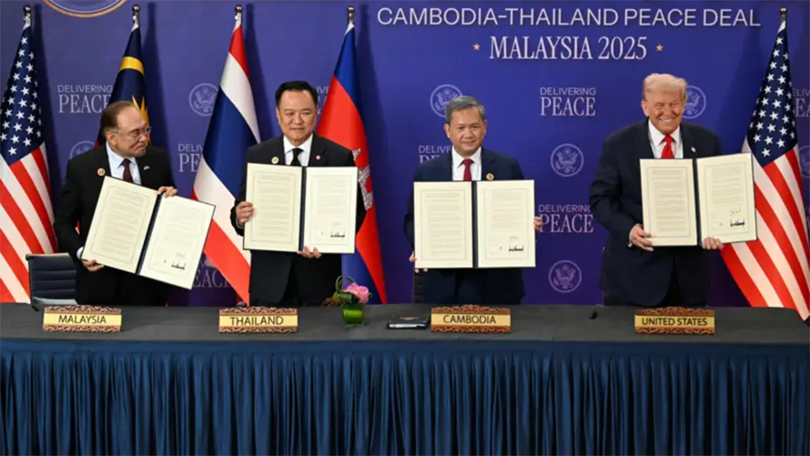 एजेन्सी, ९ कार्तिक । थाइल्यान्ड र कम्बोडियाले आइतबार अमेरिकी राष्ट्रपति डोनाल्ड ट्रम्पको उपस्थितिमा विस्तारित युद्धविराम सम्झौतामा हस्ताक्षर गरेका छन् ।