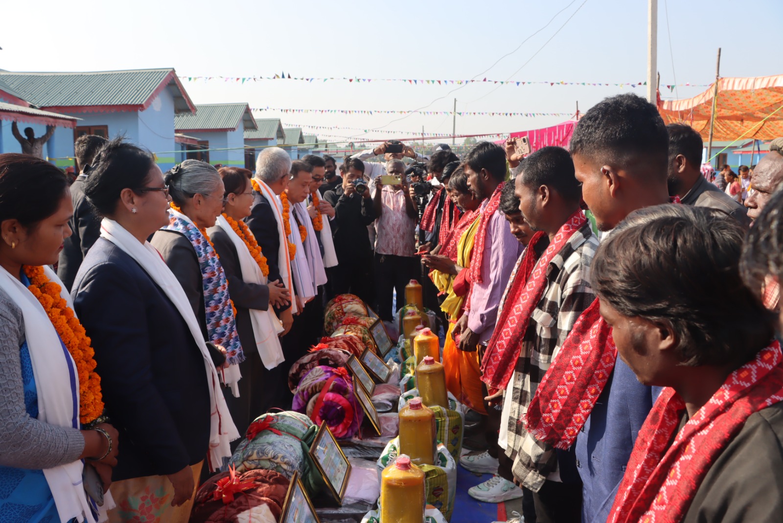 सुनसरी निर्वाचन क्षेत्र नं. ३ की निवर्तमान सांसद समेत रहेकी पूर्वमन्त्री भगबती चौधरीको विशेष पहलमा निर्माण गरिएका वातावरणीय भूकम्प प्रतिरोधी तीन कोठे घरहरु हस्तान्तरण गरिएको हो । ग्रामीण महिला उत्सुकता विकास मञ्च (फरवार्ड)ले अन्तर्राष्ट्रिय दातृ निकाय संस्था बुद्धिष्ट चुजी च्यारिटी फाउन्डेसनको वित्तीय सहयोगमा निर्माण गरिएका उक्त घरमा २ वटा शयन कक्ष, एक भान्सा कोठा, शौचालय र खानेपानीका लागि कल समेत जडान गरिएको छ । गरिब र विपन्न समुदायका लागि सुरक्षित आवास निर्माण परियोजनाअन्तर्गत निर्मित घरहरुको लागत ६ लाख ५० हजार छ ।
