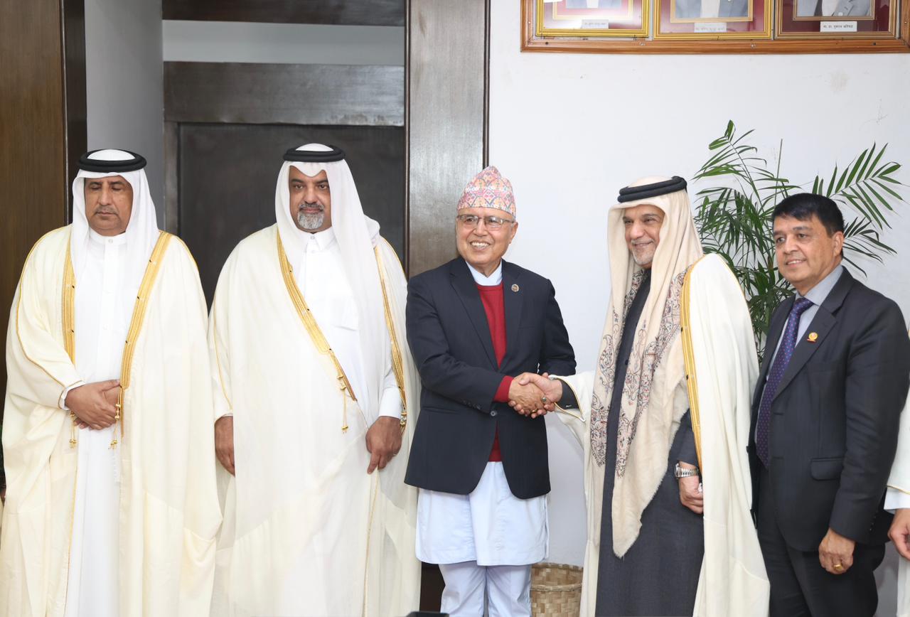 काठमाडौँ, २८ माघ । कतार चेम्बर अफ कमर्स एन्ड इन्डस्ट्रिजका बोर्ड सदस्य मोहद अहमद एम.ए. अलोबैदेलीको नेतृत्वमा आएको कतारी प्रतिनिधिमण्डले मंगलबार अर्थमन्त्री रामेश्वर प्रसाद खनाल र परराष्ट्रमन्त्री बालानन्द शर्मासँग भेटवार्ता गरेको छ ।
