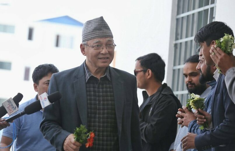 एमालेका नेताहरूलाई युवाले फूल दिएर गरे नेतृत्व फेर्न आग्रह