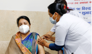काठमाडौँ, २ चैत । राष्ट्रपति विद्यादेवी भण्डारीले कोरोना भाइरस (कोभिड–१९) विरुद्धको खोप लगाएकी छन् । त्रिवि शिक्षण अस्पताल, महाराजगञ्जको खोप केन्द्रमा राष्ट्रपति भण्डारीले खोप लगाएकी हुन् । कोरोना खोप लगाएपछि सञ्चारकर्मीलाई संक्षिप्त प्रतिक्रिया दिँदै राष्ट्रपति भण्डारीले आफ्नै उमेर समूह पर्खिएर बसेकी तर बंगलादेश भ्रमणमा जानु पर्ने भएकाले खोप लगाएको बताइन् । उनले भनिन्, सबैले लगाईसकेपछि लगाउनुपर्ने…