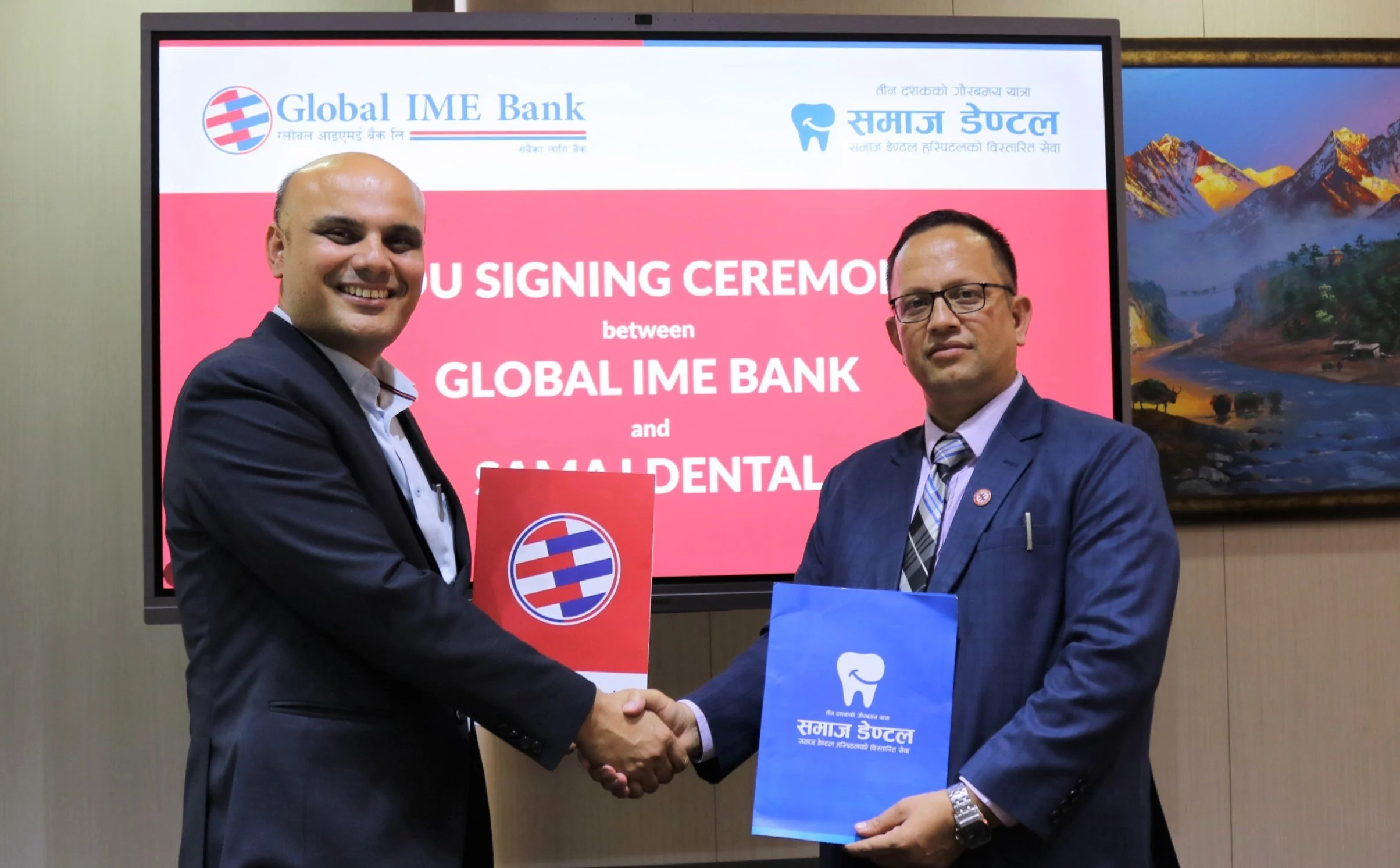 काठमाडौँ, ९ मंसिर । ग्लोबल आइएमई बैंक लिमिटेडका ग्राहकले समाज डेन्टल अस्पतालमा विशेष छुट पाउने भएका छन् । यससम्बन्धी सम्झौतामा बैंकका ट्रान्जेक्सन बैंकिङ्ग सेल्स तथा विजनेश प्रमुख प्रकाश पौडेल र समाज डेन्टल अस्पतालका प्रबन्ध निर्देशक शंकु घिमिरेले हस्ताक्षर गरेका छन् । साथै, बैंकको क्रेडिट कार्ड मार्फत भुक्तानी गर्दा १२ महिनासम्म किस्ताबन्दीमा भुक्तानी गर्न मिल्ने सेवा…