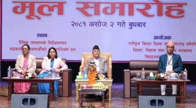 असोज ७, काठमाडौँ । शिक्षा, विज्ञान तथा प्रविधि मन्त्रालयले बिश्वविद्यालयहरूको गुणस्तर सुधार्नका लागि आइतबार शुरु गरेको अन्तरक्रिया जारी रहेको छ। मन्त्रालयमा सोमबार मन्त्री विद्या भट्टराईको उपस्थितिमा योजना आयोगका सदस्य, विश्वविद्यालय अनुदान आयोग र मध्य पश्चिम विश्वविद्यालयका पदाधिकारीहरूसँग छलफल सम्पन्न भएको छ ।कार्यक्रममा मन्त्री भट्टराईले सबै विश्वविद्यालयलाई शिक्षाको गुणस्तर र प्रभावकारी सेवा प्रवाहमा गम्भीरताका साथ ध्यान…