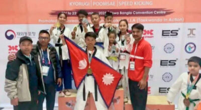 काठमाडाैँ, १७ पौष । भारतमा सम्पन्न ९ भारत अन्तर्राष्ट्रिय तेक्वान्डो च्याम्पियनसिप २०२५ मा काठमाडौँ बुढानिलकण्ठ पाठशालाकी छात्राश्रेया राईले ४४ केजी तौल समूहमा तेस्रो स्थान हासिल गर्दै काश्य पदक जित्न सफल भएकी छिन् । उक्त प्रतियोगितामा विभिन्न देशका खेलाडीहरू बीच भएको प्रतिस्पर्धामा बुढानिलकण्ठ नगरपालिका ९ मण्डिकाटारमा अवस्थित छात्रा राईले नेपालको लागि नै ऐतिहासिक उपलब्धि हासिल गरेकी हून्…