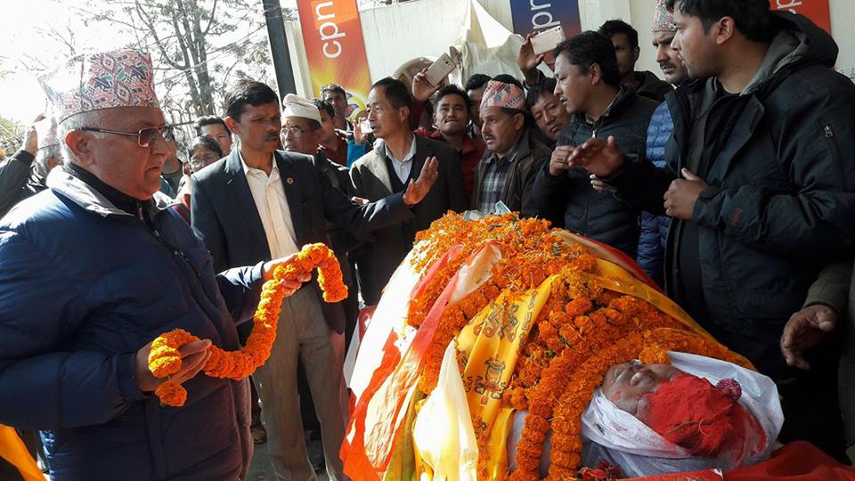 एमाले अध्यक्ष ओलीसहितका नेताहरुद्वारा दिवंगत राईको पार्थिव शरीरमा श्रद्धाञ्जलि अर्पण