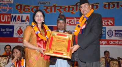 काठमाडौँ, २६ फागुन । चन्द्रलोक प्रतिष्ठानले ११४ औं अन्तर्राष्ट्रिय महिला दिवसको सन्दर्भमा गोरखापत्र संस्थानबाट प्रकाशित मुना मासिकका सह –सम्पादक लक्ष्मी खतिवडा लगायत समाजमा विभिन्न क्षेत्रमा योगदान पु¥याउनुभएका महिलालाई सम्मान गरेको छ । प्रतिष्ठानले उपसभामुख इन्दिरा रानामगर, नेतृ जयन्ती राई, रन्जु झा र गोकणेश्वर नगरपालिकाका उप प्रमुख सान्नानी लामालगायत ३० जना महिलालाई सम्मान गरिएको हो ।…