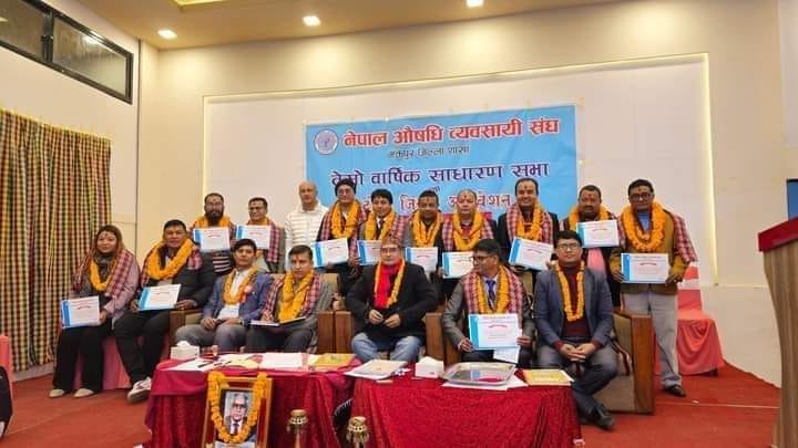 भक्तपुर, ८ पौष । नेपाल औषधि व्यवसायी संघ भक्तपूर जिल्ला शाखाको तेश्रो साधारण सभा तथा दोश्रो अधिवेशनले पुनः नारायणप्रसाद भुषालको अध्यक्षतामा नयाँ कार्यसमिति गठन गरेको छ । भक्तपुरमासम्पन्न अधिवेशनले वरिष्ठ उपाध्यक्षमा बिनोदकुमार सापकोटा, थोक आयात तर्फ उपाध्यक्षमा किरण माकाजु श्रेष्ठ, खुद्रा तर्फ उपाध्यक्षमा सिताराम खाइतु, महासचिबमा संचार सिंह तामाङ, कोषाध्यक्षमा चेतन शाक्य, सचिवमा कपिल कसपाल,…